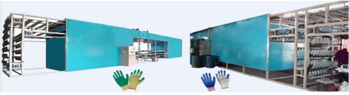 1)劳保浸胶手套生产线又叫手套浸胶机,是一种制作乳胶手套、浸胶手套的设备,根据用途,手套浸胶机有分半浸胶手套机和全浸胶手套机。