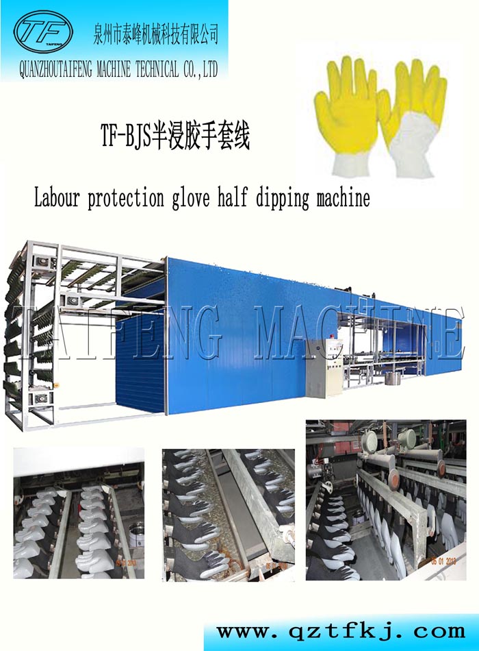 3、特殊设计的弹性活塞式模具连接装置,更换模具操作简单,无掉模现象出现。劳保手套生产线采用连续生产方式和直浸方式,成膜均匀,色泽艳丽,各种型号规格可以同时在线生产,生产线长度有30米,24米、18米等多种规格,自动化程度高、产量大、可配置自动脱模,也可以根据客户生产场地设计安装生产线长度。