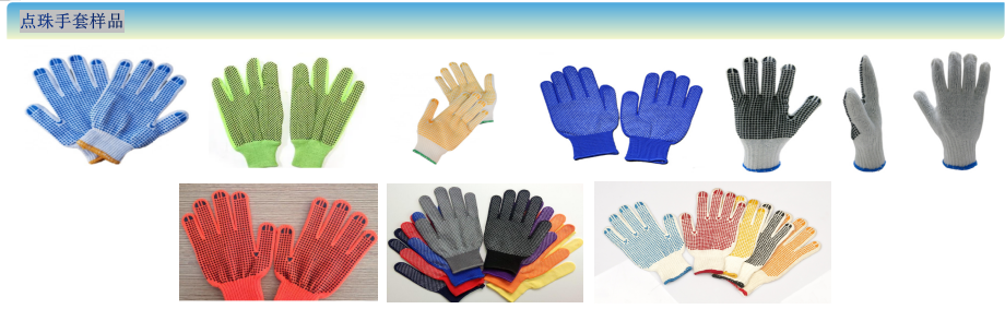 用途:在手套的表面刮上一层PVC颗粒。用以增强手套的防滑及耐用性。