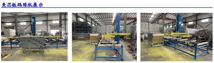 机器根据夹芯板料的加工原理,对接主机后成品堆垛。