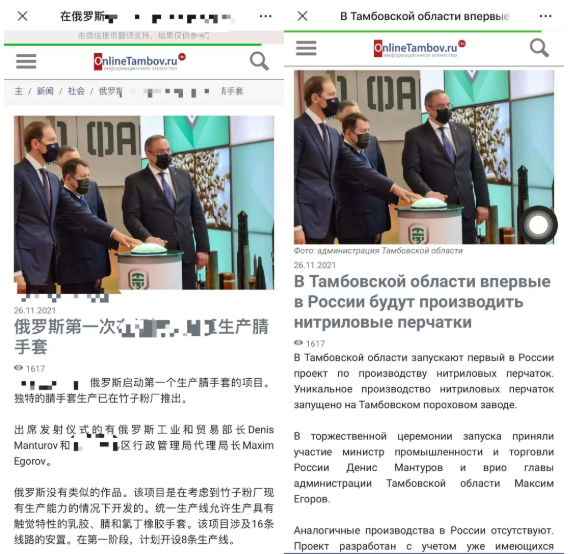友邦兄弟国家俄罗斯,就在昨天由我们公司与俄罗斯客户合作的丁腈手套生产线设备顺利投产运行,俄罗斯工业部部长,贸易部部长及当地地区管理局局长亲临现场参加启动仪式!