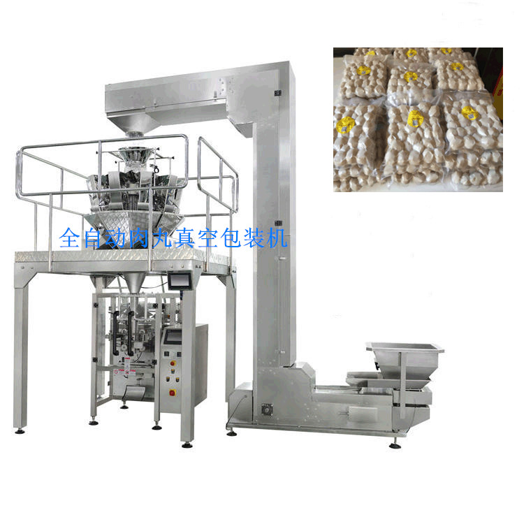 1.全自动真空包装机由提升机,组合秤及真空包装机主机组成。装袋速度快,重量精确,一人一机,实现全自动包装。