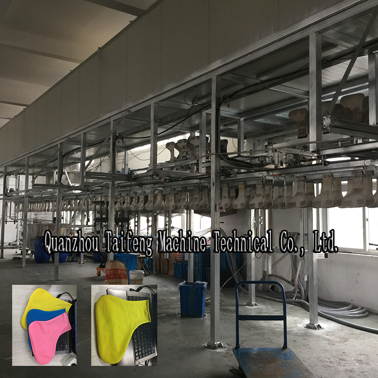 1.鞋套浸胶机按乳胶固化成型工艺进行人性化设计,流量合理,自动平衡复胶系统,使产品稳定,涂层厚薄长度均匀,无下垂点,温度均匀,产量可根据客户要求定制,脱模方便简单。